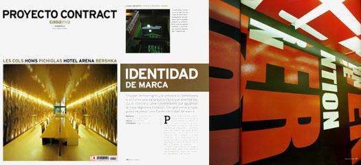 Sin embargo, aplicar este esquema propio de la marca fue difícil dadas las dimensiones del local. Por ello se abrió un doble espacio en la entrada que se resigue con la valla publicitaria convirtiéndola en parte de la pared y el techo en el sentido longitudinal del local. De este modo el panel luminoso estira de fuera hacia dentro y de arriba hacia el fondo. El local pasa a ser un gran cartel publicitario abierto a la calle. En esta propuesta en concreto, la gráfica se escapa del panel luminoso deslizándose por una de las paredes laterales, lo que contribuye a enfatizar aún más si cabe su protagonismo. Al fondo, tras la pantalla se ubican los probadores y los accesos al almacén.