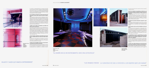 Su actitud positiva, su predisposición a plantear cualquier tema desde múltiples puntos de vista y el no caer en rutinas. Me satisface pensar que nuestro trabajo va para adelante y que el equipo cree en lo que está haciendo. Además, tenemos la suerte de trabajar a tres escalas con una gran libertad, lo que nos permite pasar de un edificio como el de la BMW, con diez mil metros cuadrados, a una pieza de joyería para DUCH CLARAMUNT de tan sólo pocas décimas de milímetro. Partimos de una estrategia bien definida y organizada con un equipo competente. Sin embargo, creo que los que tenemos la suerte de trabajar en aquello que nos gusta, hemos de ser generosos. En los últimos diez años hemos inventado una manera de hacer que ahora estaría bien que la socializáramos de algún modo. De alguna manera el objetivo final no es otro que hacer sentir bien a la gente, que confíen en ti y les aportes algo.